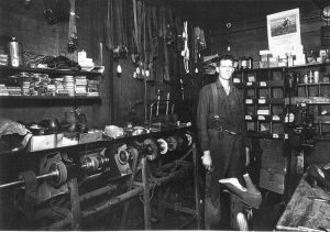 From the Jordan Independent, March, 1914: Frank Simones bought a building from William Schmokel in March of 1914, intending to open a harness shop located on the southeast corner of Main Street and Pleasant Avenue. In a few months, the building was ready for business. Simones did all kinds of leather work, along with repairing shoes and boots. He was an asset to the town for many years. In March 1941, he sold the business and moved to Shakopee where he opened a modern shoe shop.