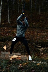 The first day started with a double log chop followed immediately by an 11-mile trail run. Athletes were scored on both the log-chop time as well as the two together.