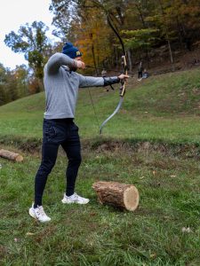 Next came the bowathalon, another of Kurkowski’s favorites. The tournament style contest had contestants shoot five arrows and then sprint 400 meters through rough terrain such as hills and gravel. Arrow shots took seconds off the sprint time for the five-round contest.